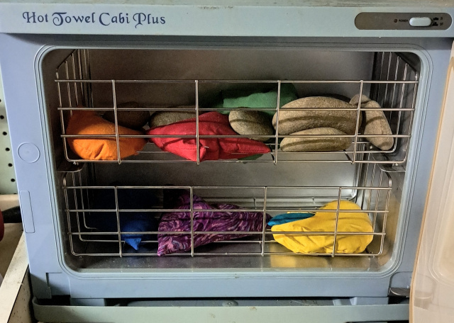 Hot Towel Cabinet - keeps towel & stones warm and ready for bodywork! Call Etta today at 765-606-7727